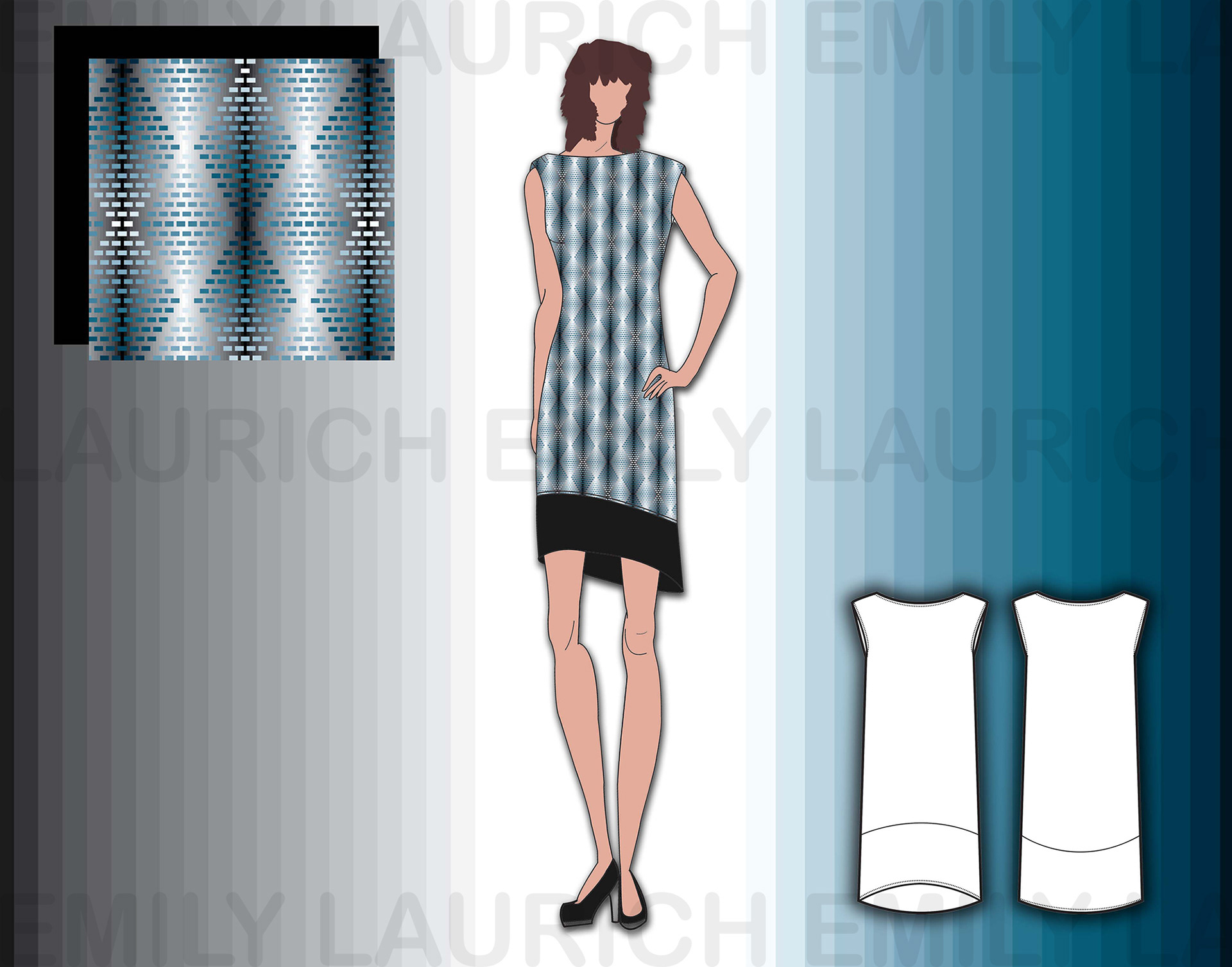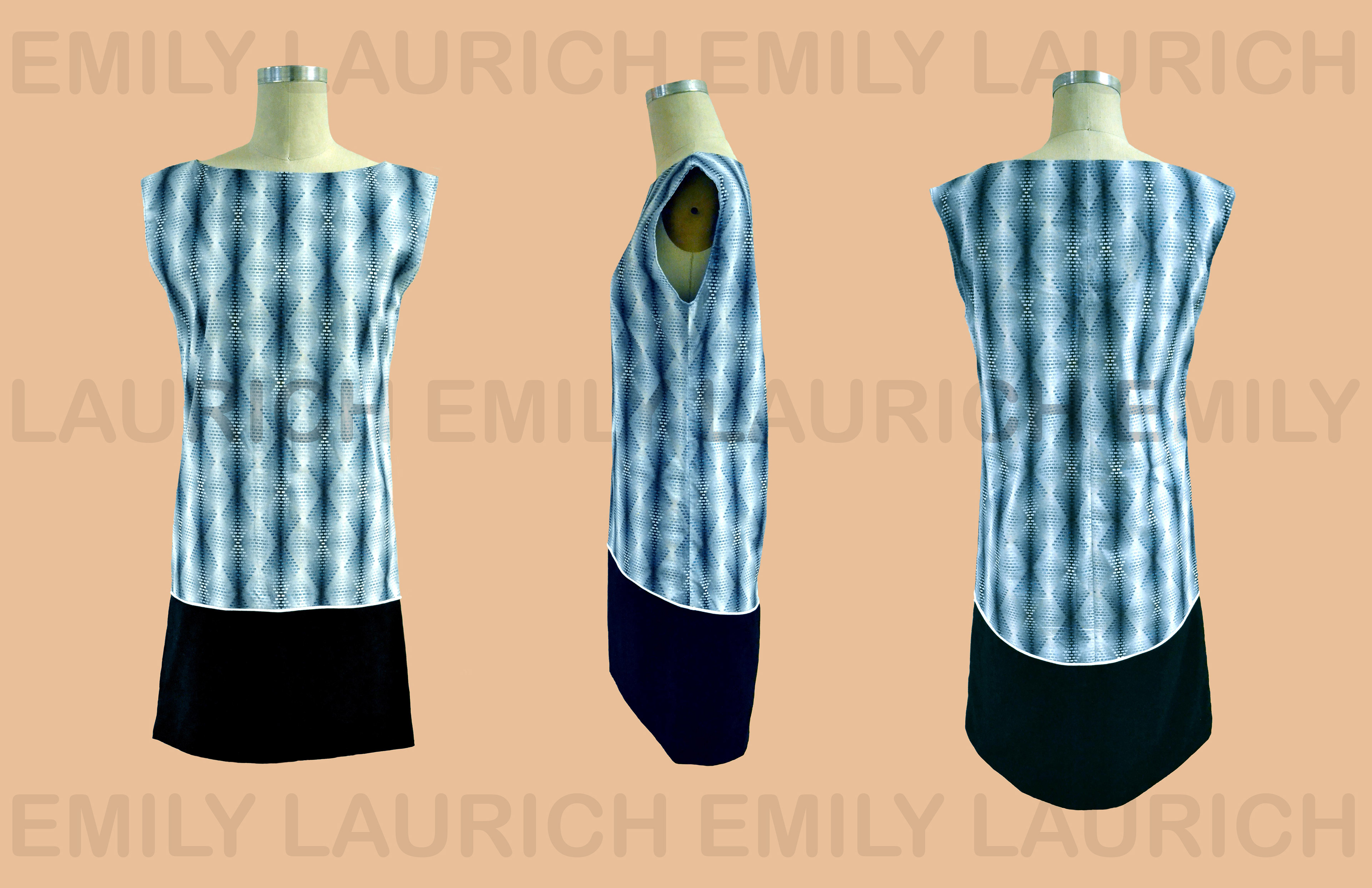 to develop a luminous textile print that she cut and sewed into a dress for the course “Color and Design in 2 and 3 Dimensions”.