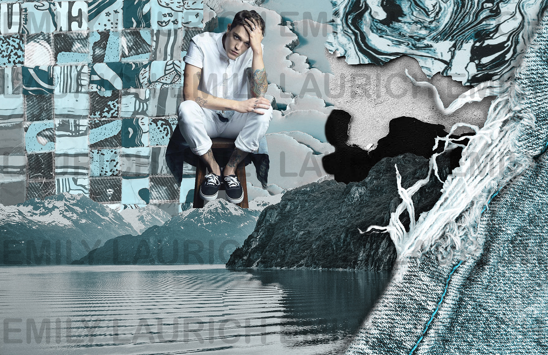 To conceptualize this line, Laurich researched and analyzed trends of alternative musicians over the last century. Inspired by the DIY approach of Punk subcultures, Emily transformed her own photographs into prints and handmade new textiles through layering, weaving, and manipulating her personal collection of band merch and deadstock fabrics.